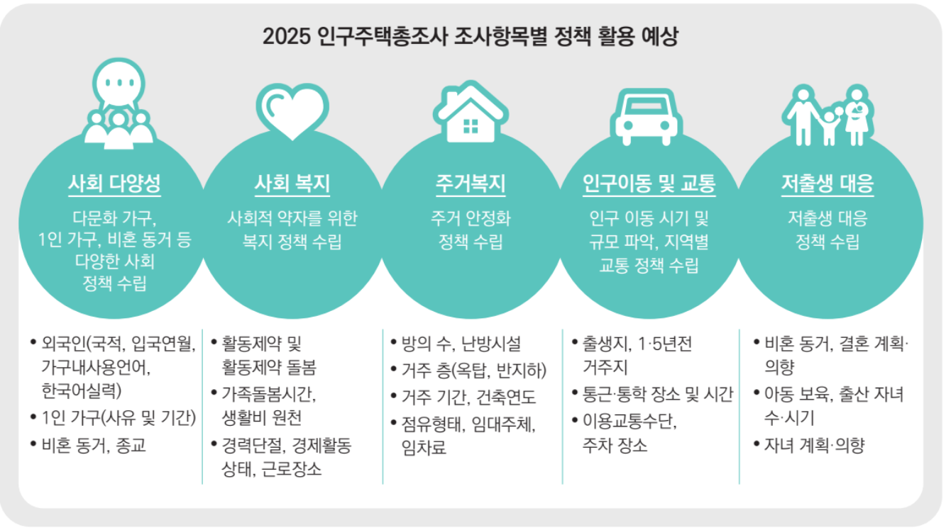 모든 정부 정책—주거정책, 교통·통근체계, 교육·보육, 복지, 인구정책 등—은 현실의 ‘인구·가구·주택’ 상태를 정확히 파악해야 설계되고 운영될 수 있습니다.